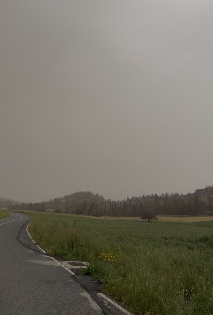 Στο μεταξύ σύμφωνα με την Αστυνομία, αυξημένες συγκεντρώσεις σκόνης επηρεάζουν την κυκλοφορία στο οδικό δίκτυο, με την ορατότητα να είναι περιορισμένη για τους διερχόμενους οδηγούς οχημάτων.