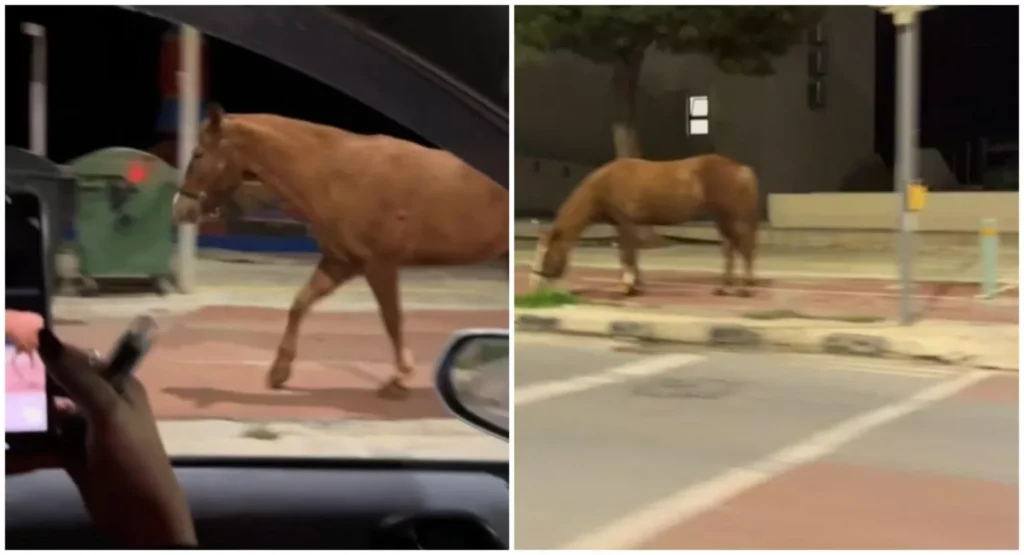 Όπως φαίνεται σε βίντεο που αναρτήθηκε στα μέσα κοινωνικής δικτύωσης, ένα άλογο κυκλοφορεί ελεύθερο στους δρόμους.