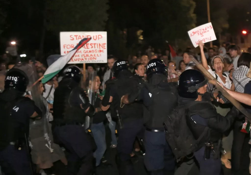 At one point, tensions escalated when, according to what the organizers told the Cyprus News Agency (CNA), police forces—who were not initially at the scene but arrived a few minutes after the protest began—approached the demonstrators, leading to incidents of harassment. The organizers also stated that tear gas was used by the police, calling it an “unprovoked attack.”