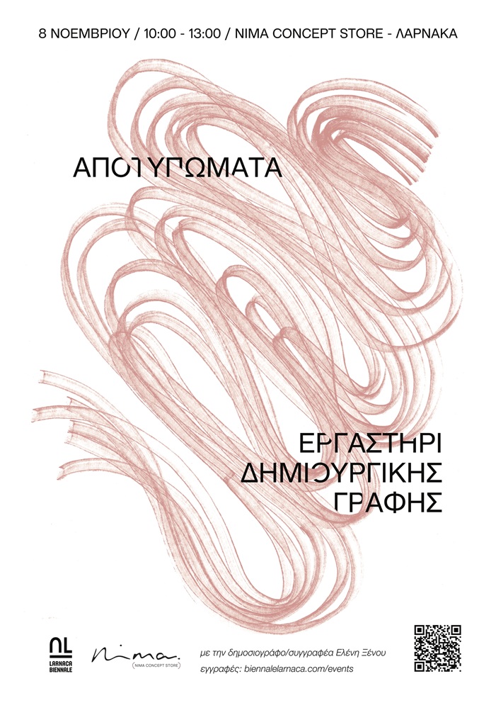 Text follows in English 4η ΜΠΙΕΝΑΛΕ ΛΑΡΝΑΚΑΣ H τελευταία εβδομάδα της Μπιενάλε Λάρνακας φέρνει κινηματογραφικές βραδιές, τηνπαρουσίαση του επίσημου καταλόγου και νέες εκθέσεις κλείνοντας την μεγαλύτερη έκδοση μέχρι σήμερα 24-28 Νοεμβρίου Παραμένουν λίγες μέρες μόνο μέχρι η 4 η έκδοση της Μπιενάλε Λάρνακας να ολοκληρώσει τον κύκλο της, μετά από επτά γεμάτες εβδομάδες με έργα … Read more H τελευταία εβδομάδα της Μπιενάλε Λάρνακας