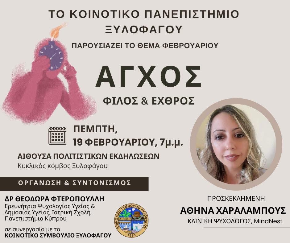 Το Κοινοτικό Πανεπιστήμιο Ξυλοφάγου παρουσιάζει το θέμα Φεβρουαρίου : Άγχος: Φίλος και Εχθρός