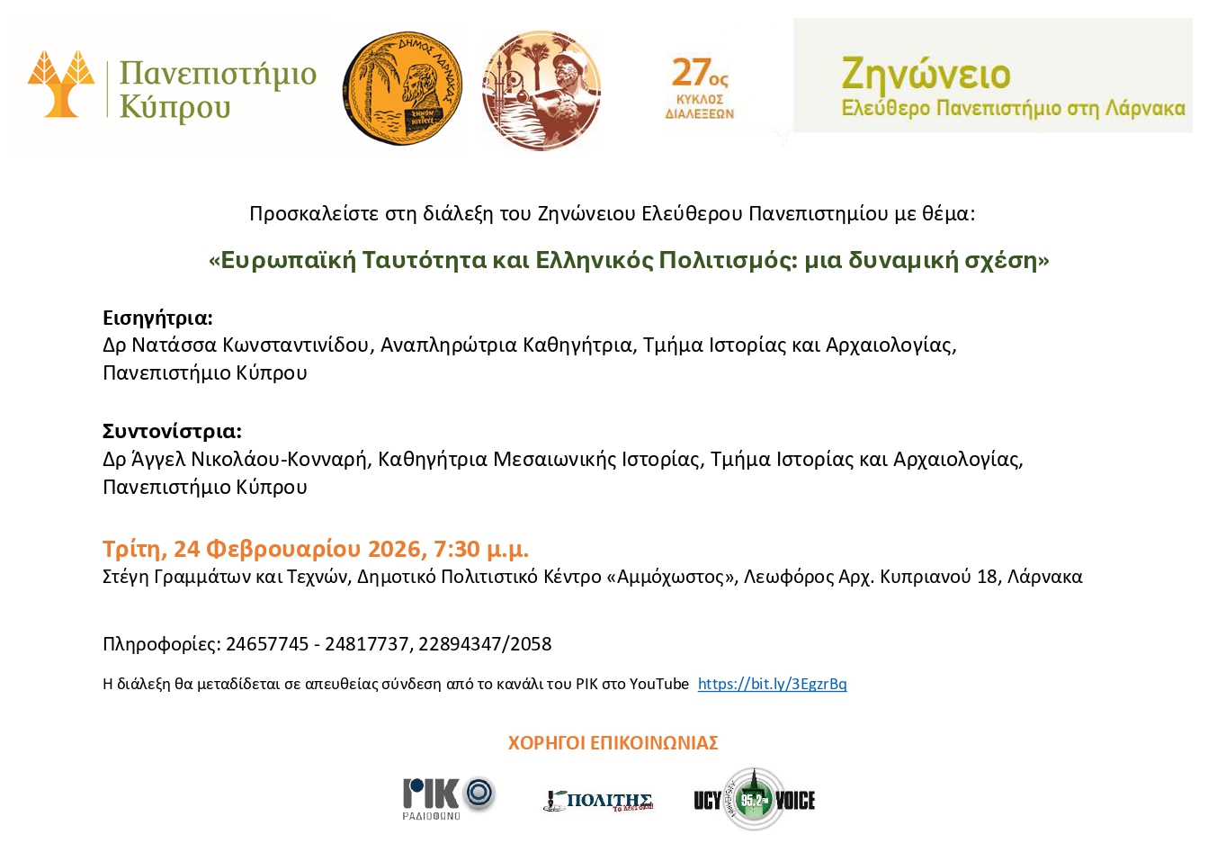 Διάλεξη στη Λάρνακα: «Ευρωπαϊκή Ταυτότητα και Ελληνικός Πολιτισμός: μια δυναμική σχέση»
