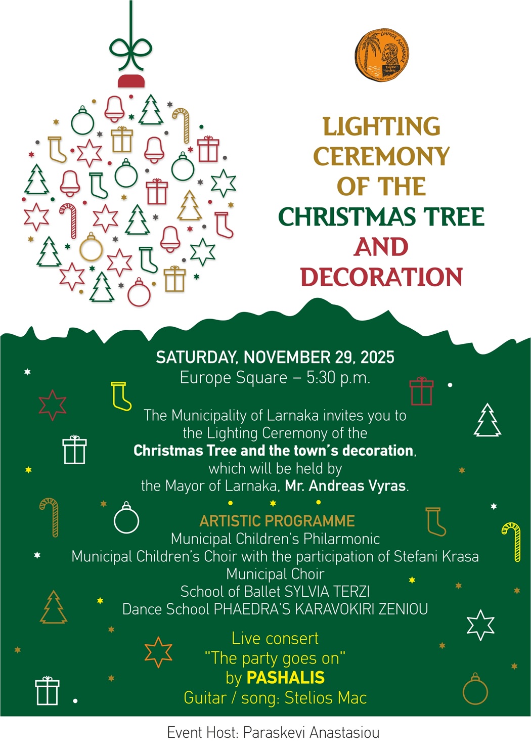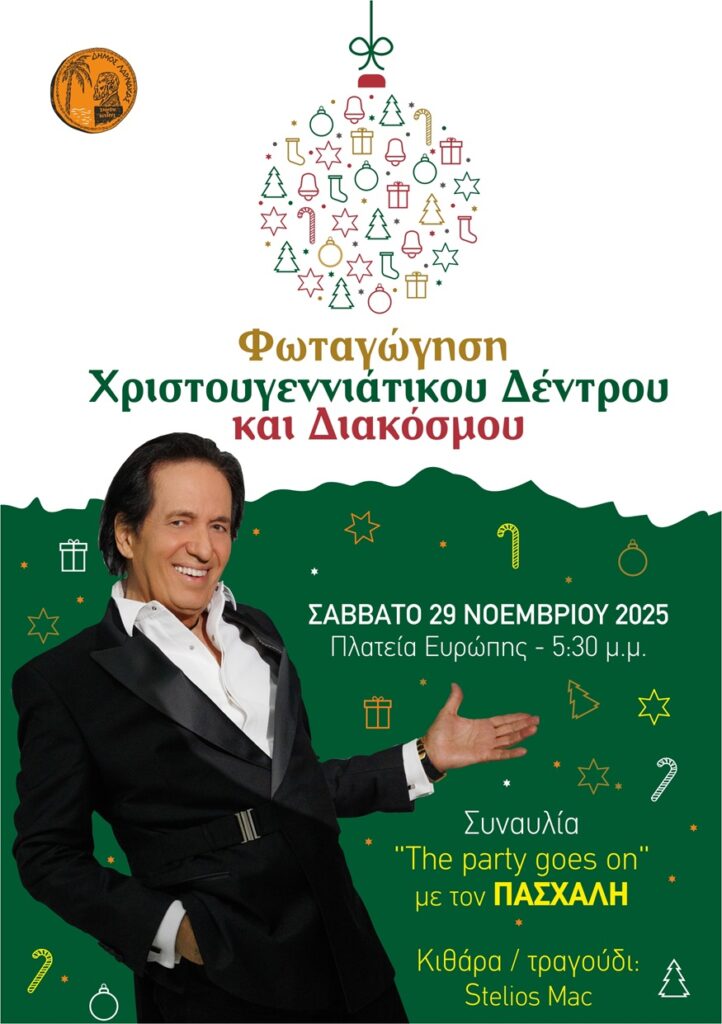 Municipality of Larnaca: A Sparkling Christmas Tree Lighting Ceremony with music, dance, and a big party with Paschalis!