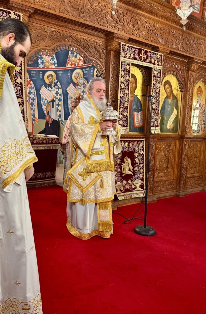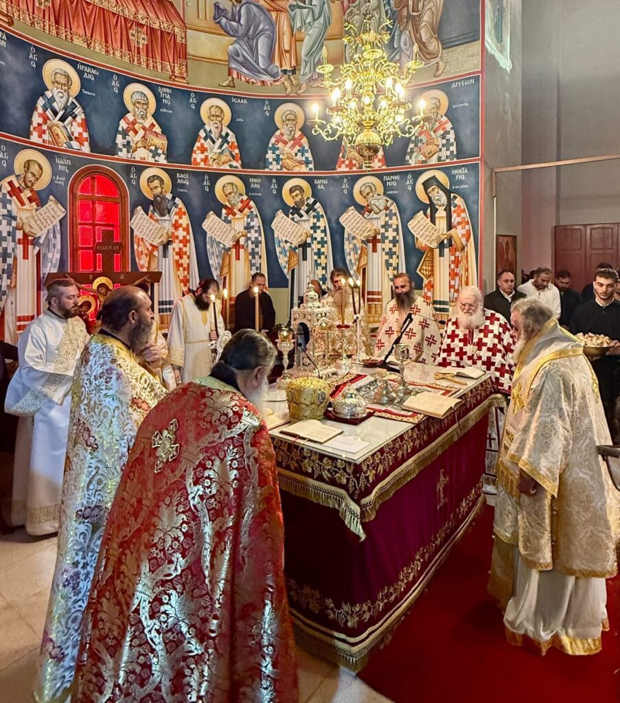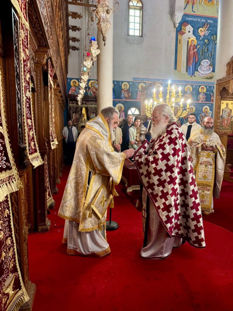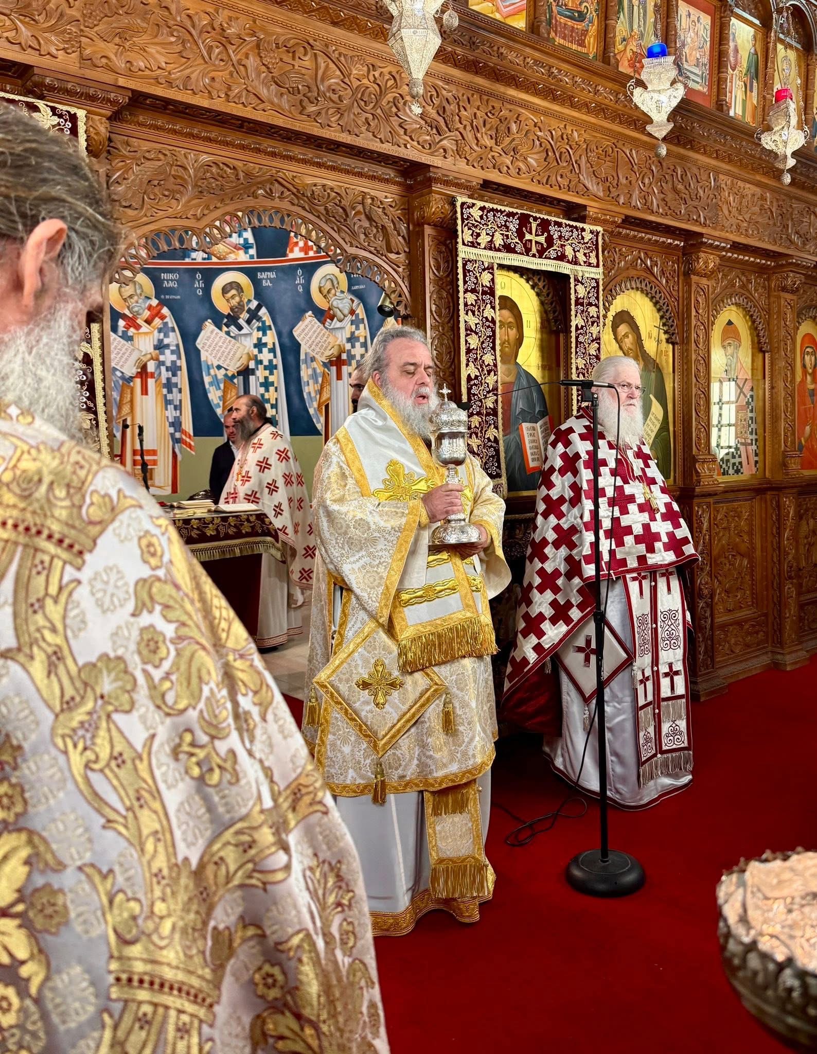 Της Θείας Λειτουργίας προεξήρχε ο Πανιερώτατος Μητροπολίτης Κιτίου κ.κ. Νεκτάριος, συλλειτουργούντων κληρικών της καθ’ ημάς Ιεράς Μητροπόλεως, καθώς και κληρικών εκ των γειτονικών Ιερών Μητροπόλεων, ενώ σε αυτήν συμμετείχε και ο Καθηγούμενος της Ιεράς Μεγίστης Μονής Βατοπαιδίου, Γέρων Εφραίμ, προσδίδοντας ιδιαίτερη πνευματική λαμπρότητα στη λατρευτική σύναξη.