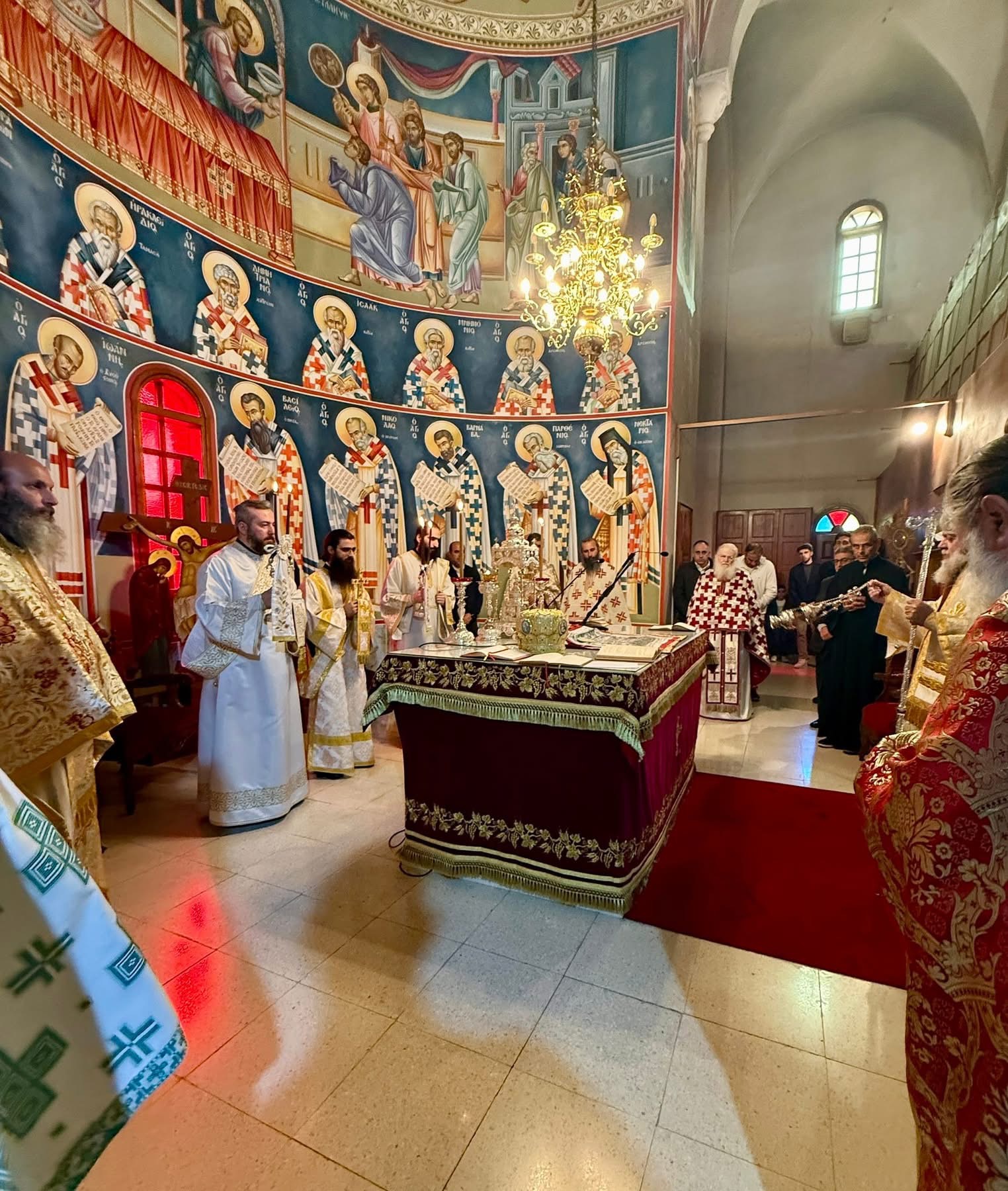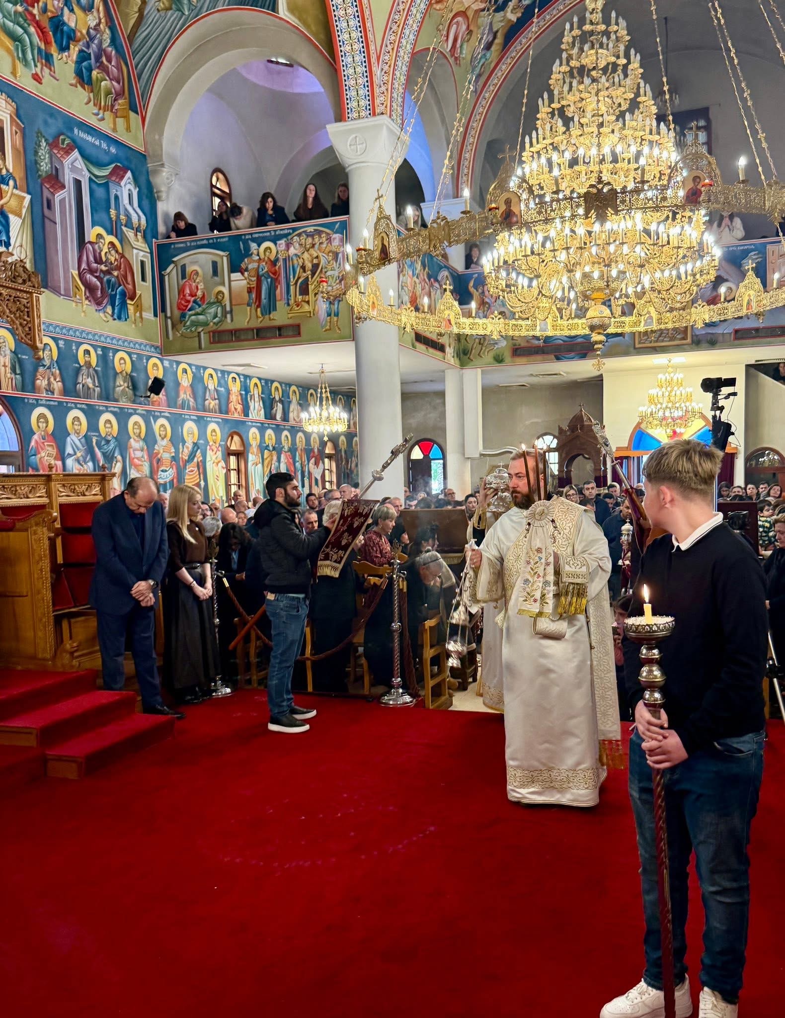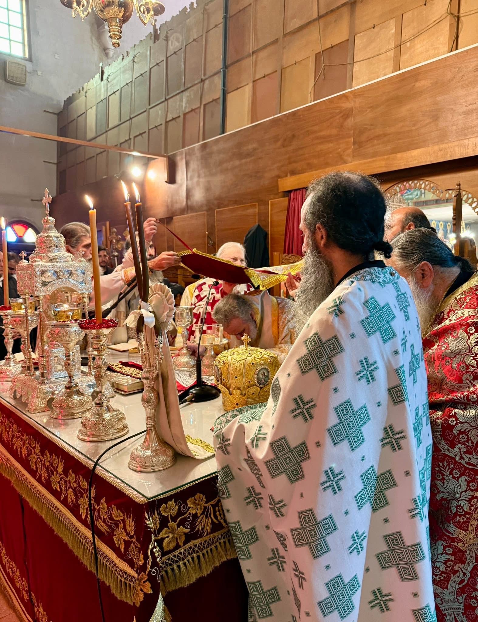 Της Θείας Λειτουργίας προεξήρχε ο Πανιερώτατος Μητροπολίτης Κιτίου κ.κ. Νεκτάριος, συλλειτουργούντων κληρικών της καθ’ ημάς Ιεράς Μητροπόλεως, καθώς και κληρικών εκ των γειτονικών Ιερών Μητροπόλεων, ενώ σε αυτήν συμμετείχε και ο Καθηγούμενος της Ιεράς Μεγίστης Μονής Βατοπαιδίου, Γέρων Εφραίμ, προσδίδοντας ιδιαίτερη πνευματική λαμπρότητα στη λατρευτική σύναξη.