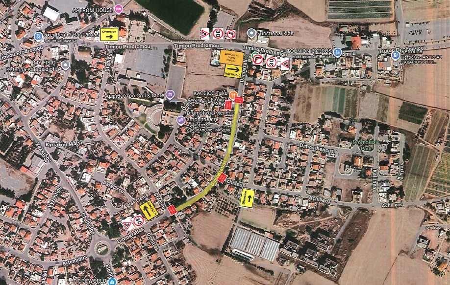 Στο επισυνημμένο σχέδιο παρουσιάζεται το τμήμα του δρόμου που θα παραμείνει κλειστό. Για την διακίνηση των οχημάτων θα υπάρχει οδική σήμανση. Οι διερχόμενοι οδηγοί προτρέπονται να είναι ιδιαίτερα προσεκτικοί και να ακολουθούν τις προειδοποιητικές Πινακίδες και τα μέτρα κυκλοφοριακής διαχείρισης που έχουν συμφωνηθεί με τις Αρμόδιες Αρχές.