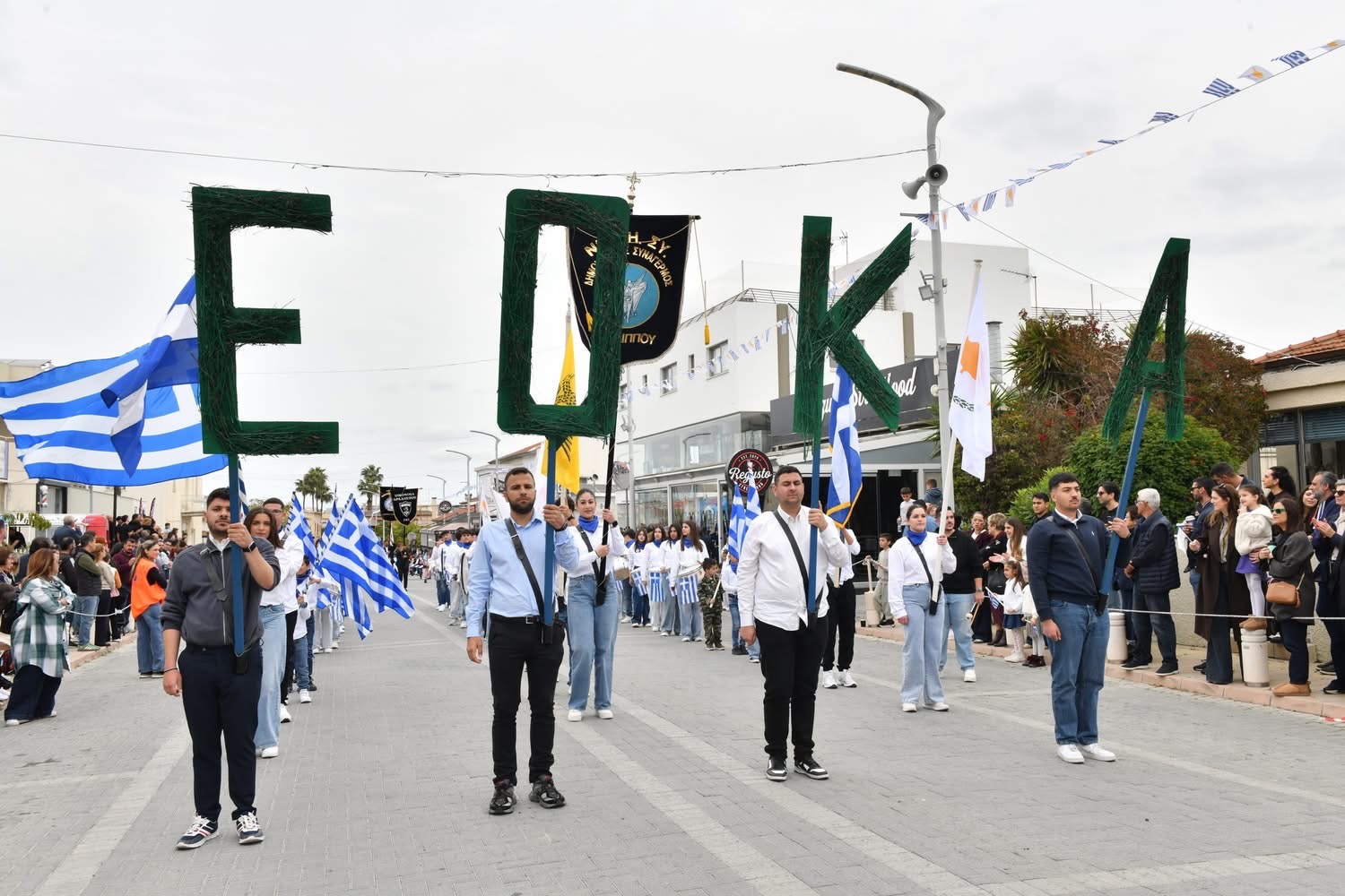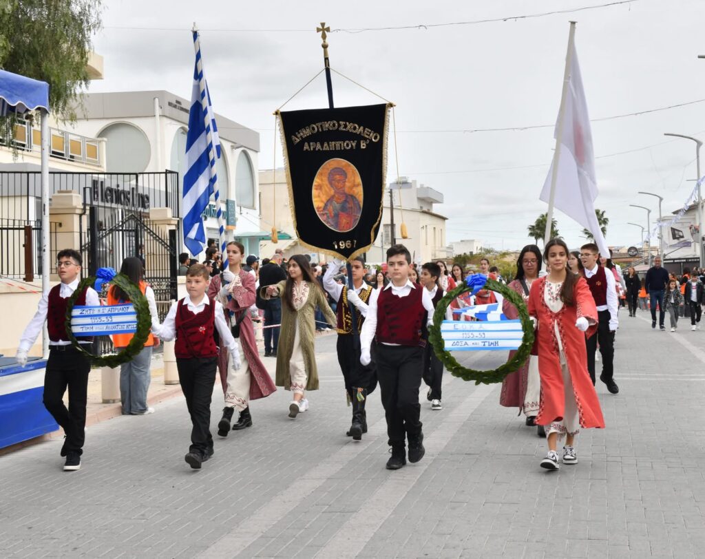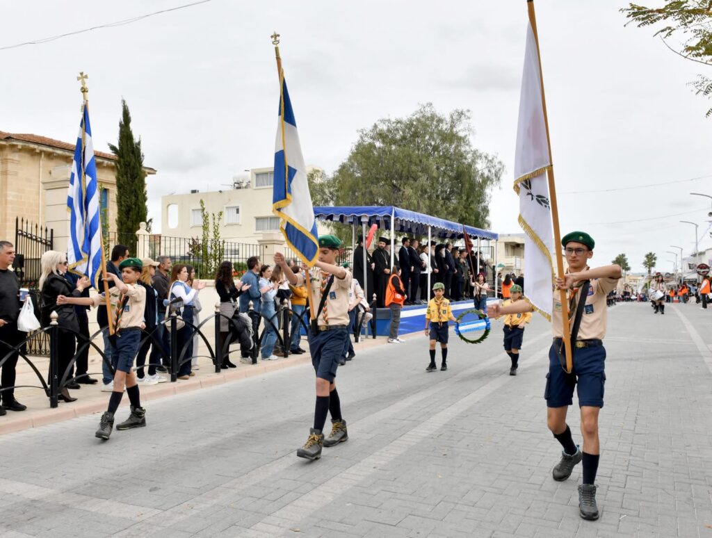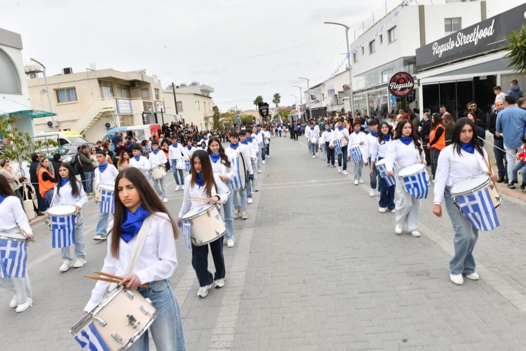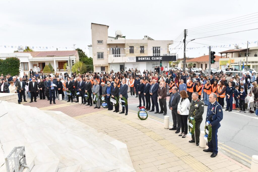 Οι εκδηλώσεις συνεχίστηκαν με παρέλαση μαθητών και οργανωμένων συνόλων στη Λεωφόρο Μακαρίου και ολοκληρώθηκαν με κατάθεση στεφάνων στο Μνημείο Πεσόντων, αποδίδοντας την πρέπουσα τιμή σε όσους αγωνίστηκαν για την πατρίδα.