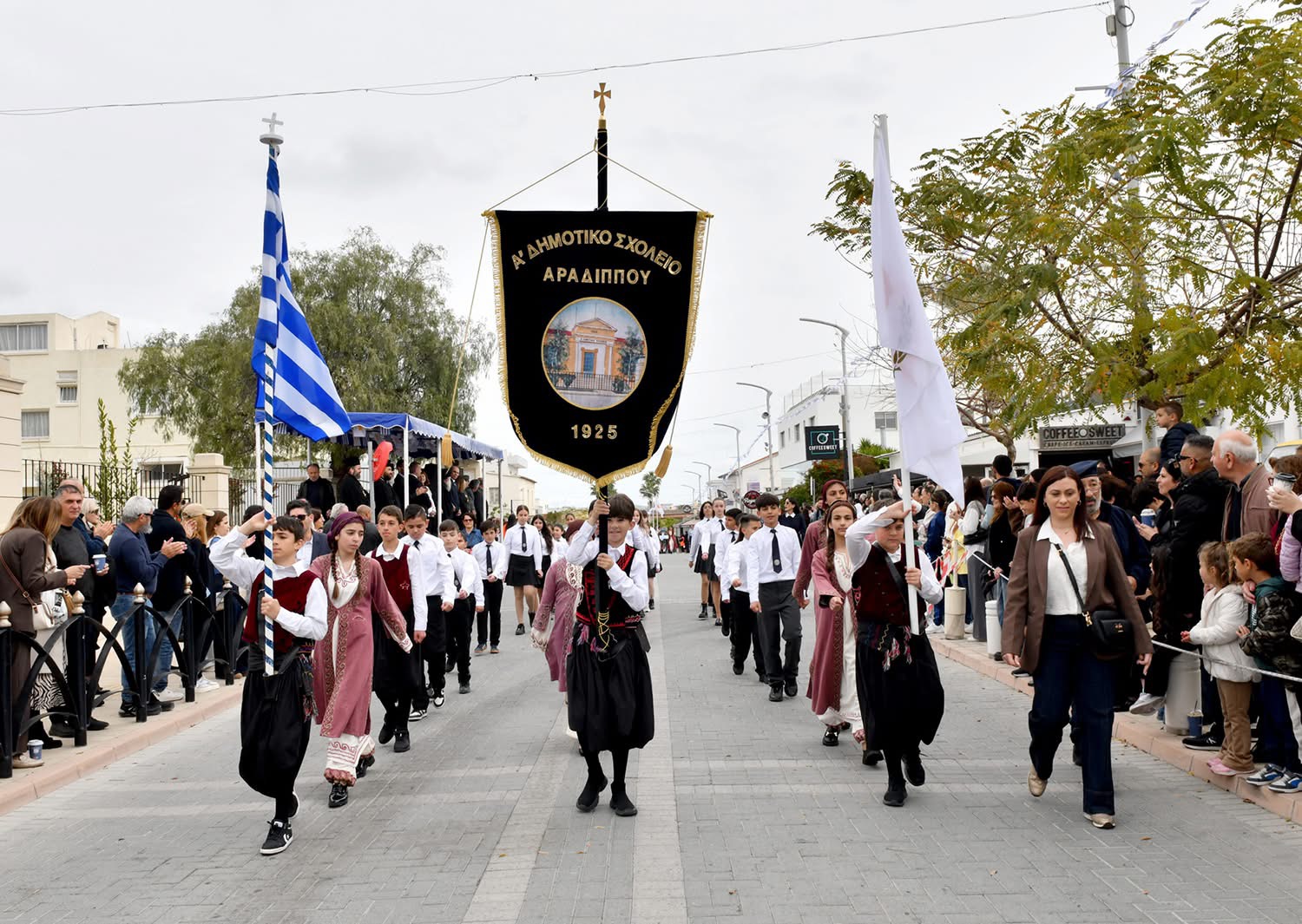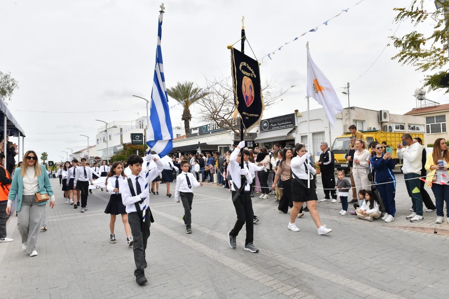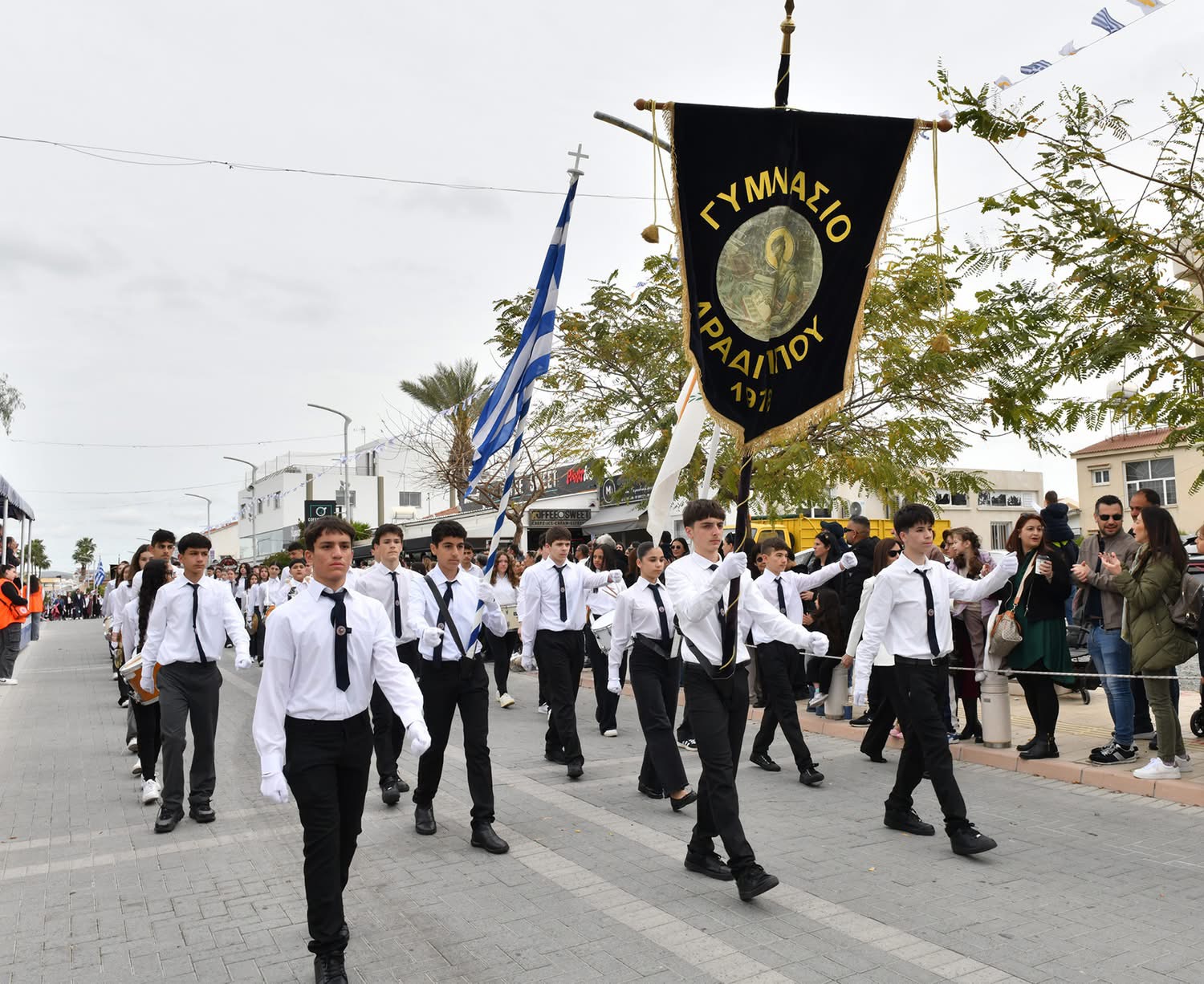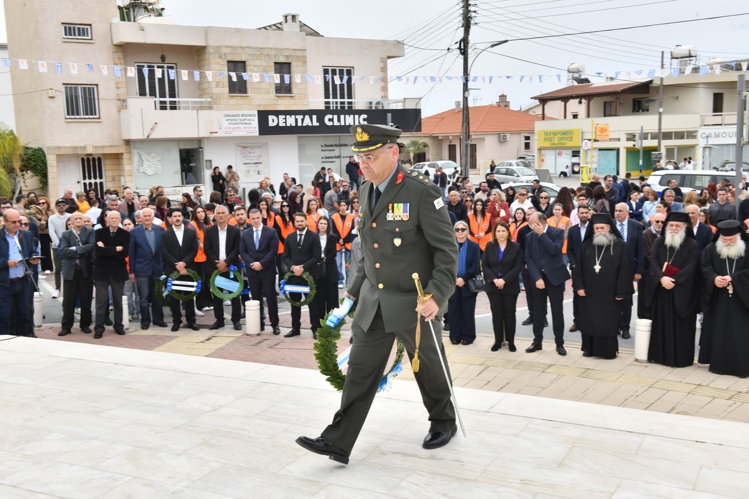 Οι εκδηλώσεις συνεχίστηκαν με παρέλαση μαθητών και οργανωμένων συνόλων στη Λεωφόρο Μακαρίου και ολοκληρώθηκαν με κατάθεση στεφάνων στο Μνημείο Πεσόντων, αποδίδοντας την πρέπουσα τιμή σε όσους αγωνίστηκαν για την πατρίδα.
