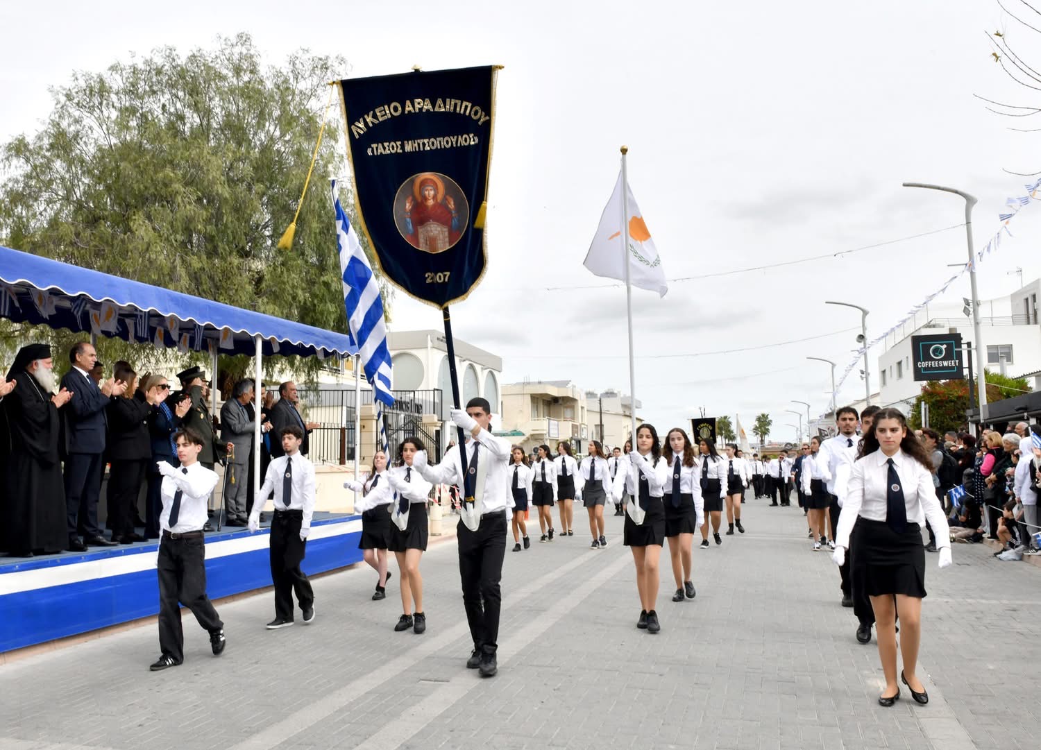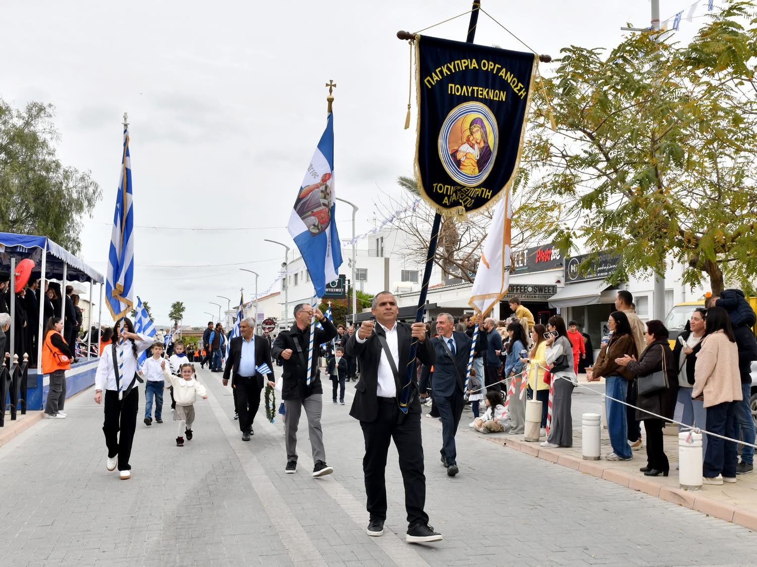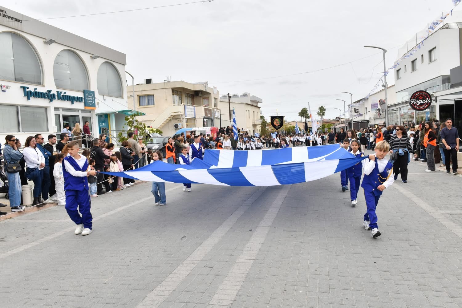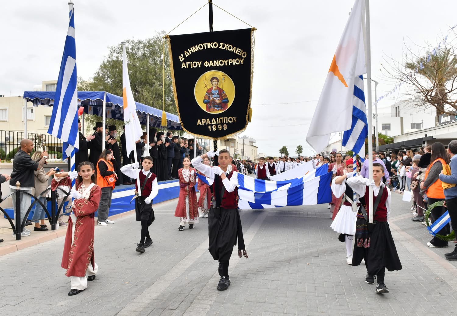Οι εκδηλώσεις συνεχίστηκαν με παρέλαση μαθητών και οργανωμένων συνόλων στη Λεωφόρο Μακαρίου και ολοκληρώθηκαν με κατάθεση στεφάνων στο Μνημείο Πεσόντων, αποδίδοντας την πρέπουσα τιμή σε όσους αγωνίστηκαν για την πατρίδα.