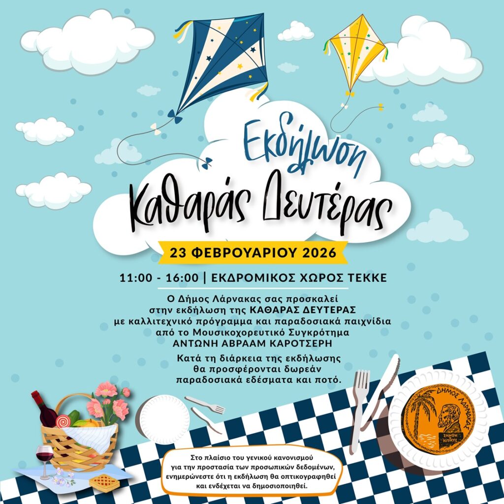 Please note that kite flying in the Larnaca Airport area, particularly in aircraft approach zones, must be avoided on Clean Monday, as it may pose risks to flights. The Municipality of Larnaca looks forward to the public’s understanding and cooperation to prevent unwanted incidents.