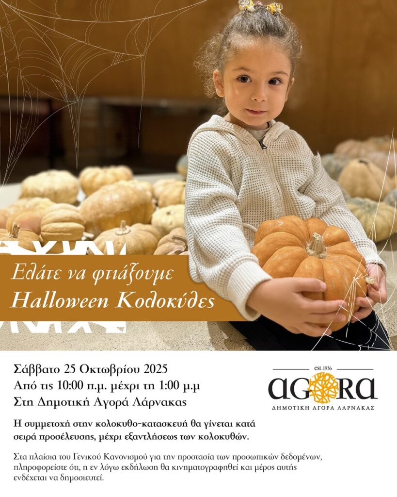 Ο Δήμος Λάρνακας συνεχίζει την προσπάθειά του να φέρει ξανά ζωή και κόσμο στο κέντρο της πόλης, διοργανώνοντας όμορφες δράσεις που συνδυάζουν τη χαρά, τη δημιουργία και την αίσθηση κοινότητας. Αυτή τη φορά, η δράση είναι αφιερωμένη στα παιδιά — με μια φανταστική εκδήλωση στο πνεύμα του Halloween, στη Δημοτική Αγορά Λάρνακας!