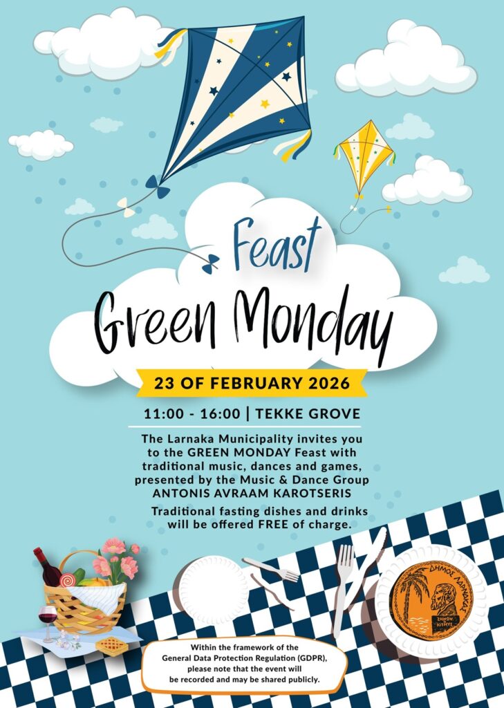 As every year for many years, the Municipality of Larnaca invites everyone to celebrate Clean Monday together on February 23, 2026, from 11:00 a.m. to 4:00 p.m. at the Tekke Picnic Area.