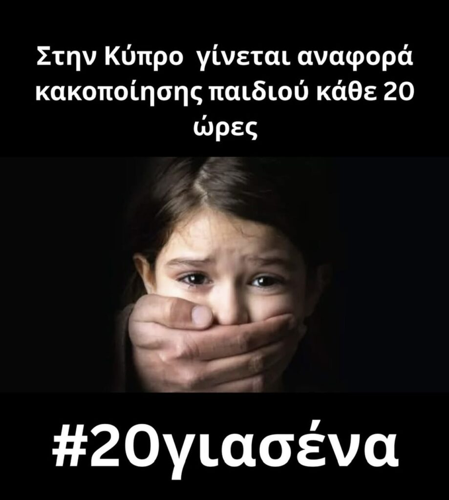 Μόνο το 2024 στην Κύπρο καταγράφηκαν 438 αναφορές παιδικής σεξουαλικής κακοποίησης, σύμφωνα με τα στατιστικά στοιχεία για τη χώρα. Ο αριθμός αυτός μεταφράζεται σε μία νέα υπόθεση κάθε 20 ώρες — ουσιαστικά ένα παιδί κάθε μέρα. Κι αυτά είναι μόνο τα παιδιά που βρήκαν τη δύναμη να μιλήσουν, που αρνήθηκαν να κρατήσουν το «μυστικό» που τους επέβαλε ο θύτης, όπως σημειώνει το Γραφείο της Επιτρόπου Προστασίας των Δικαιωμάτων του Παιδιού. Με αφορμή την Ευρωπαϊκή Ημέρα για την Προστασία των Παιδιών ενάντια στη Σεξουαλική Εκμετάλλευση και Κακοποίηση, εγκαινιάστηκε την Τρίτη μια νέα παγκύπρια εκστρατεία ενημέρωσης και δράσης με τίτλο #20ΓιαΣένα.