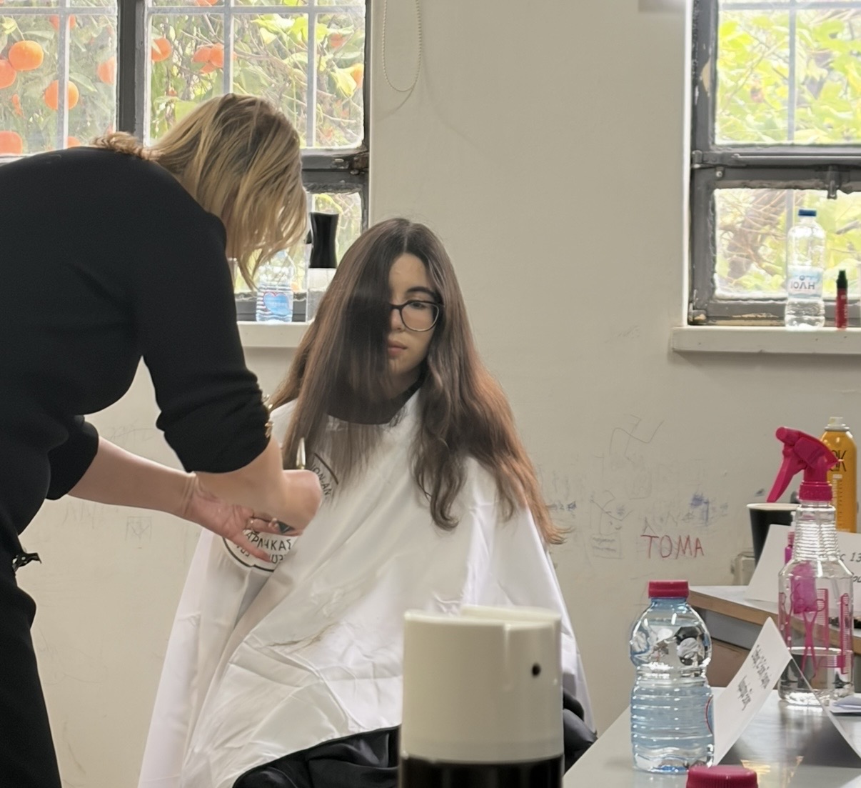 Under the title “A Haircut of Hope, a Hairstyle of Love,” the school’s Volunteering and Fundraising Committee, in collaboration with the K.M.S., organized a special event from 8:30 a.m. to 1:00 p.m. on the school premises. Students, teachers, and visitors had the opportunity, for a small symbolic fee, to get a haircut or a hairstyle, knowing that their simple act would be transformed into support and hope for those in need.