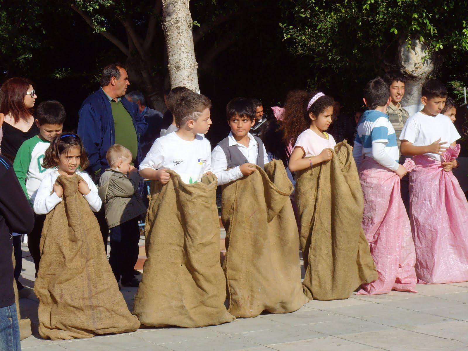 - (Οι) Σακκουλοδρομίες: Ο κάθε παίκτης παίρνει μια σακούλα και βάζει μέσα τα πόδια του. Κρατά τη σακούλα στο πάνω μέρος της και στέκεται μπροστά στη γραμμή αφετηρίας. Σκοπός είναι να φτάσεις πρώτος στη γραμμή τερματισμού πηδώντας μέσα στη σακούλα. Είναι πολύ εύκολο να χάσει κάποιος την ισορροπία του, αλλά το παιχνίδι προσφέρει πολλή διασκέδαση στους διαγωνιζόμενους και στο κοινό. Όταν δοθεί το σύνθημα, συνήθως με ένα σφύριγμα, αρχίζουν όλοι οι παίκτες να πηδάνε προς το τέρμα. Οι πρώτοι τρεις συνήθως διαγωνίζονται ξανά για να βγουν οι τρεις καλύτεροι από όλες τις διαδρομές. Το παιχνίδι αυτό μπορεί να διεξαχθεί με τουλάχιστον δυο παίκτες. Ο ιδανικός αριθμός διαγωνιζομένους είναι από δέκα έως δεκαπέντε. Οι περισσότεροι παίκτες αυξάνουν την αγωνία, τον ανταγωνισμό και κυρίως το κέφι.