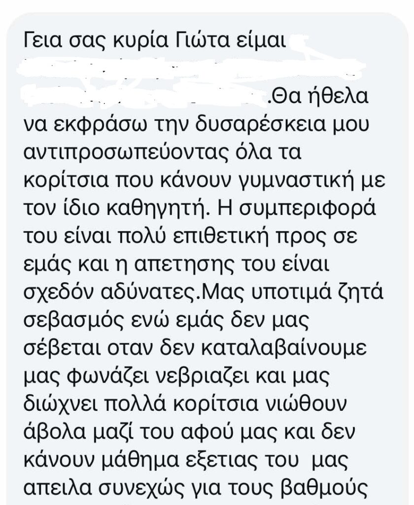 Serious complaints have reached SkalaTimes from multiple female students of different groups regarding the behavior of a Physical Education teacher at a secondary school in Larnaca. As a local media outlet with heightened sensitivity to issues of education and child protection, we consider it our duty to bring this matter to public attention.