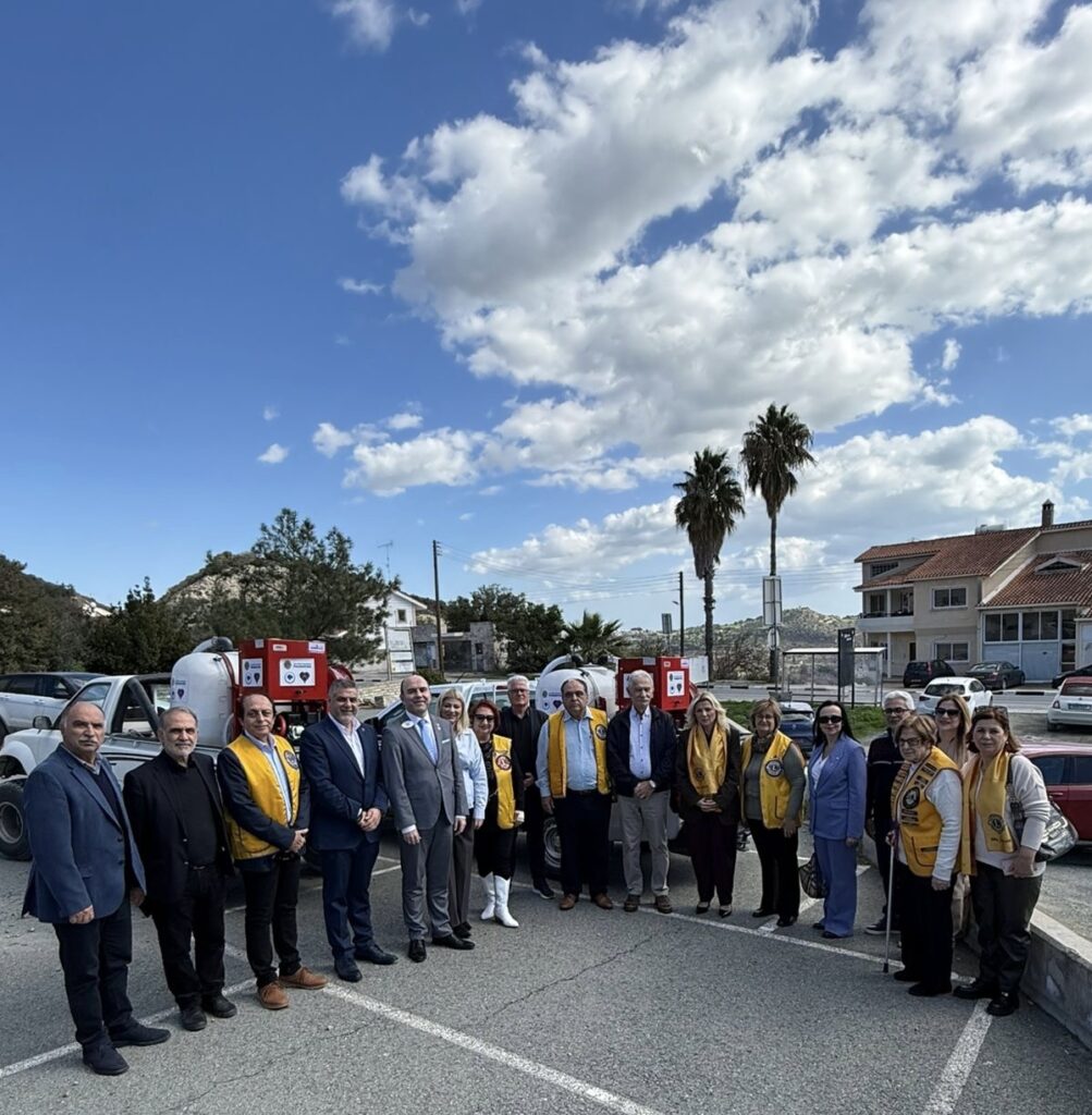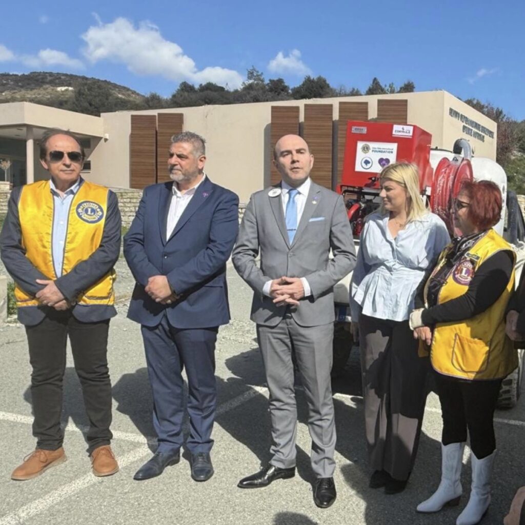 Ο Κυβερνήτης του Θέματος 117Β Βορείου Ελλάδος – Κύπρου, κ. Παναγιώτης Συνοδινός, μαζί με τον Πρόεδρο της Επιτροπής Φυσικών Καταστροφών Lions, κ. Γιώργο Λακκοτρύπη, προχώρησαν σήμερα στην παράδοση δύο Κινητών Μονάδων Πυρόσβεσης, προς στήριξη και ενίσχυση των κοινοτήτων της Ορεινής Λεμεσού και της Ορεινής Λάρνακας.