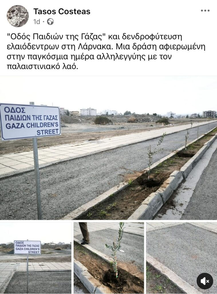 Larnaca: A symbolic response in support of Gaza – “Gaza’s Children Street” against the “Trump tree-planting”