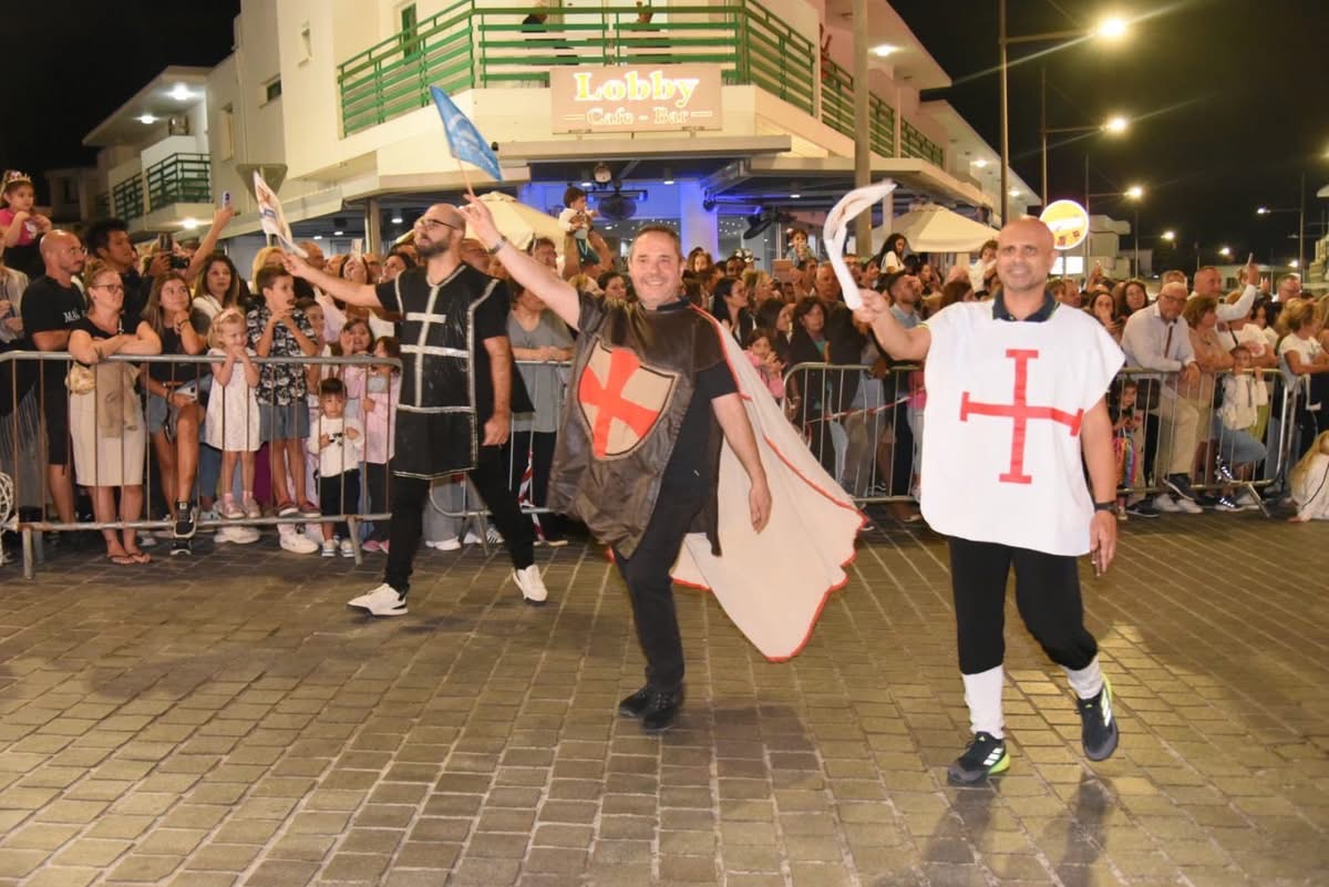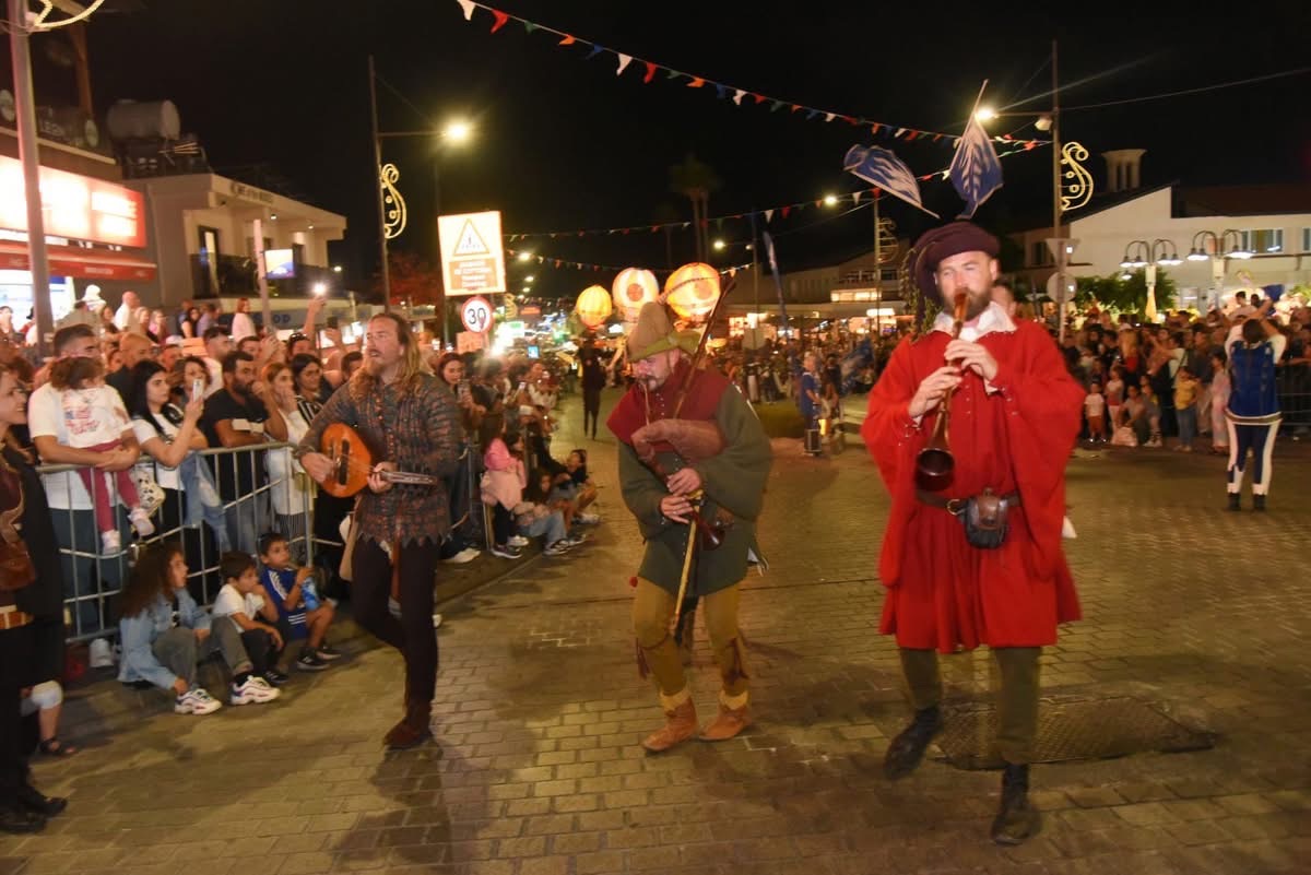Thousands of local and foreign visitors filled Makariou Avenue and the central “Giorgos Seferis” Square on Saturday night (October 11), enjoying unique moments during the fourth day of the 20th Medieval Festival of Ayia Napa, which culminated in a dazzling Medieval Parade and a magical concert by the internationally acclaimed tenor Marios Frangoulis.
