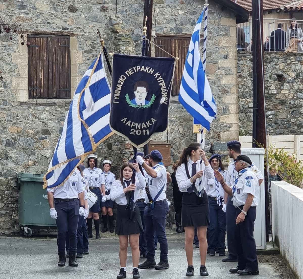 Το σχολειο του Γυμνασίου Πετράκη Κυπριανού στη Λάρνακα εκπροσωπήθηκε από την σημαιοφορο Ελένη Κουζαπά Γ3, την παραστάτη Δημητρίου Κυριακή Γ3 με την συνοδεία των καθηγητριών: Ανδρούλας Νικολάου ΒΔ, Λευκής Ζάκου Κιρκιλλή ΒΔ, Κλεοπάτρας Ιάσωνος.