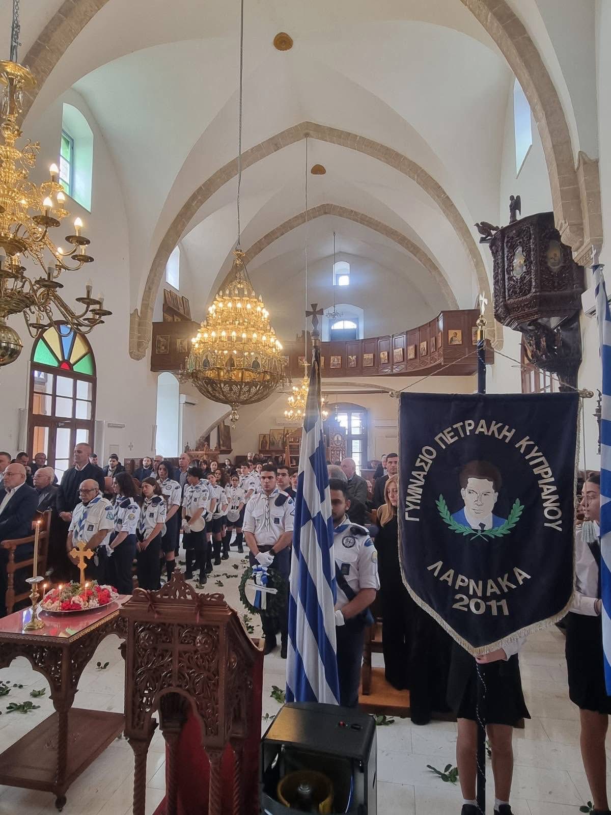 Του μνημοσύνου προέστει ο Πανιερώτατος Μητρόπολης Κιτίου Νεκτάριος και επιμνημόσυνο λόγο εκφώνησε η Υπουργός Παιδείας κ.Αθηνά Μιχαηλίδου.