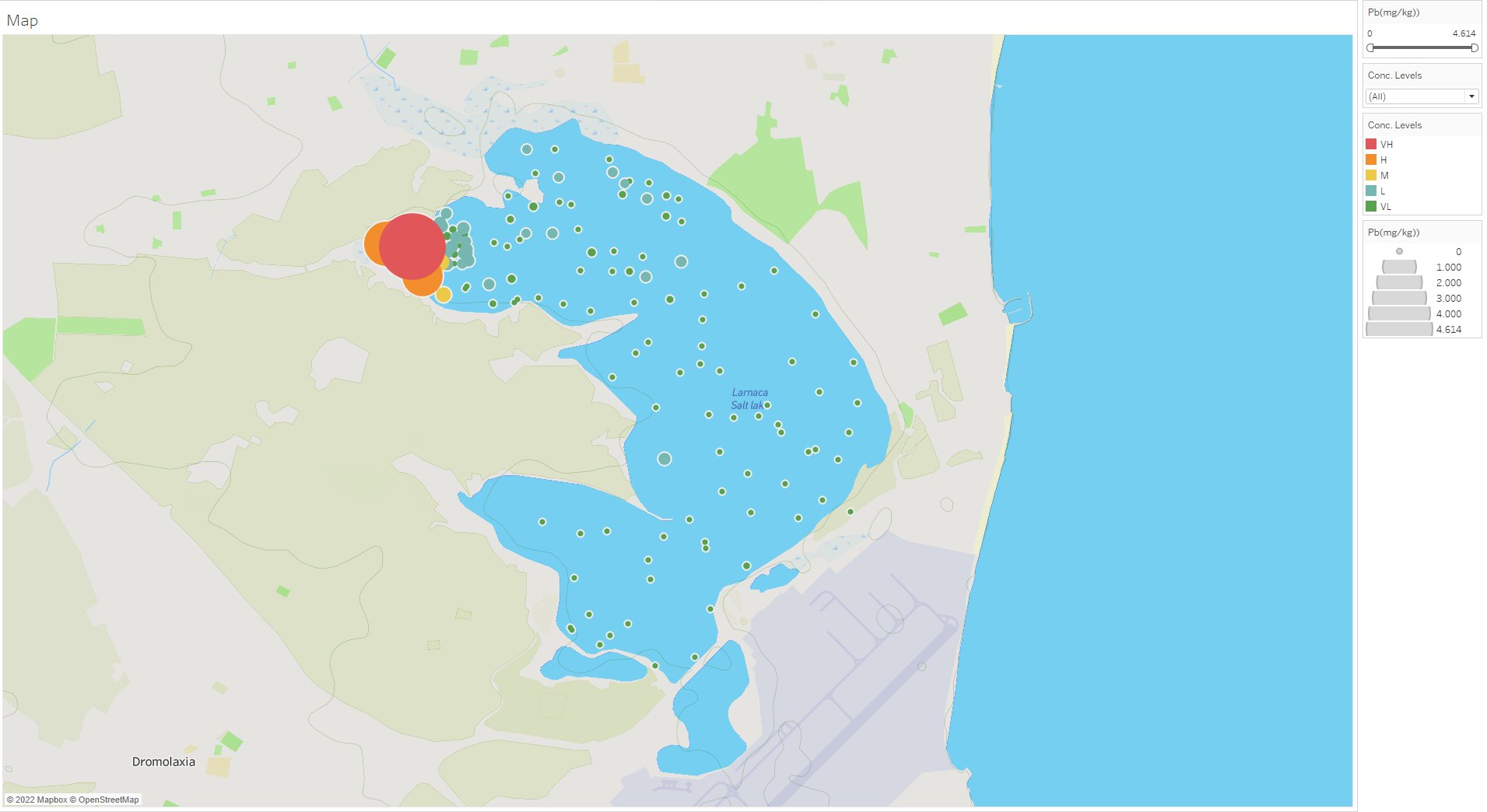 • Στις Αλυκές Λάρνακας, η ρύπανση συνδέεται με το παλαιό σκοπευτήριο και με τη χρήση μολύβδινων σκαγιών