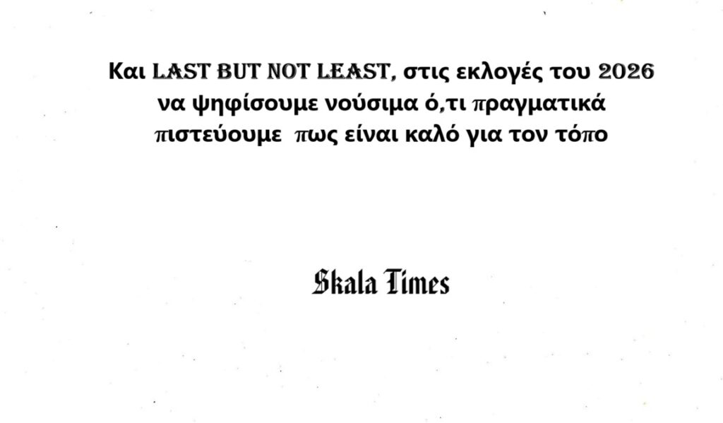 Και last but not least, στις εκλογές του 2026 να ψηφίσουμε νούσιμα ό,τι πραγματικά πιστεύουμε πως είναι καλό για τον τόπο.
