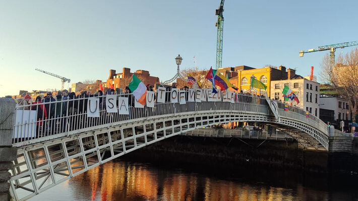Επίσης, τη Δευτέρα το ΚΚ Ιρλανδίας διοργάνωσε κινητοποίηση αλληλεγγύης στον βενεζολάνικο λαό στη γέφυρα Χα Πένι στο Δουβλίνο.