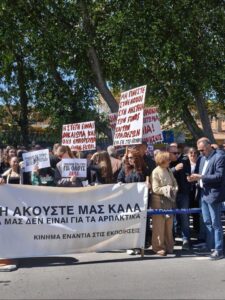 Με πανό και πλακάτ μαζεύτηκαν έξω από τη Βουλή διάφορες οργανώσεις, ώστε να διαμαρτυρηθούν για τις προτεινόμενες αλλαγές, στο θέμα των