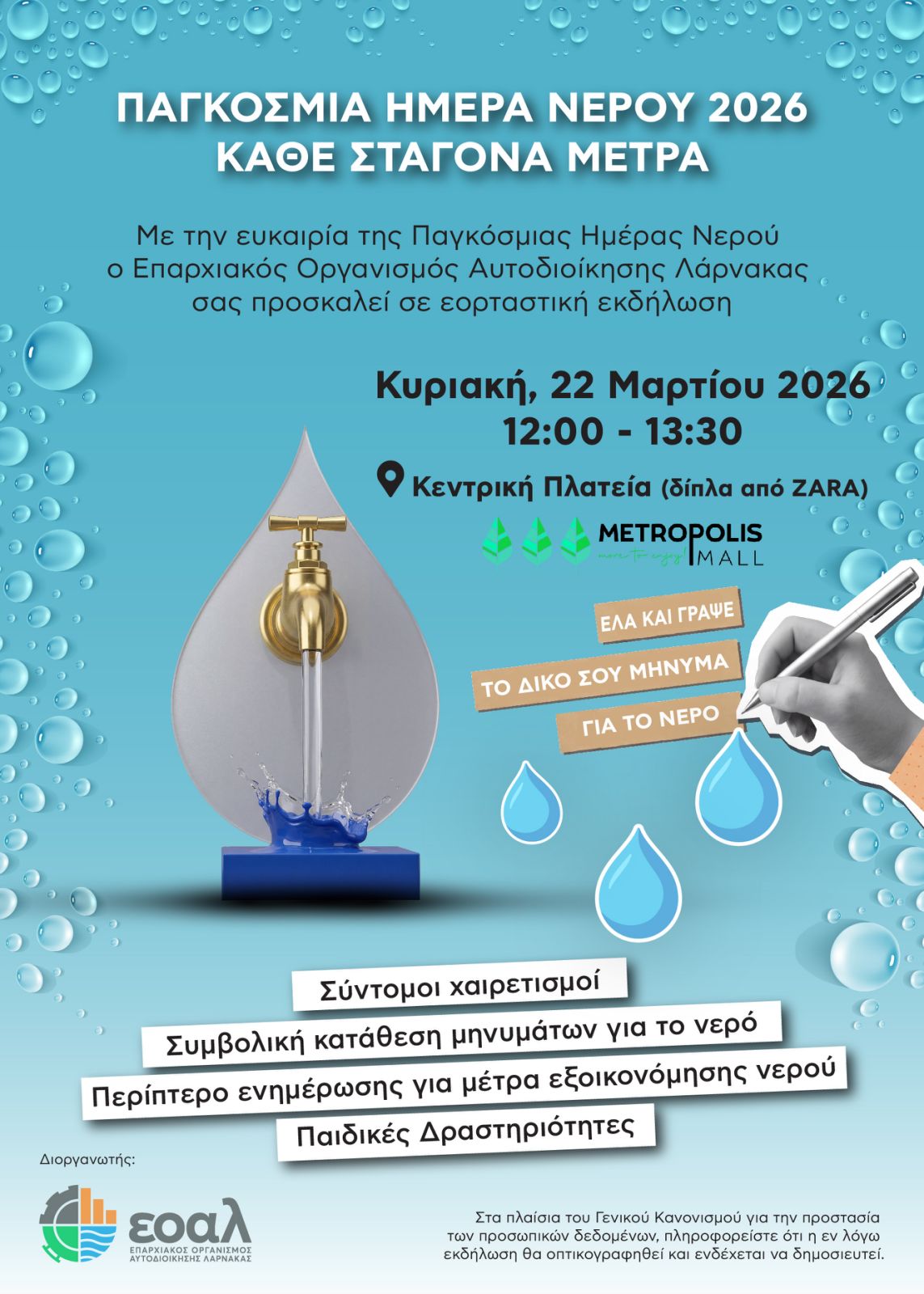 Το μήνυμα μας είναι ξεκάθαρο. «Κάθε Σταγόνα Μετρά», και μετρά μέσα από τις μικρές, καθημερινές επιλογές που, συλλογικά, κάνουν τη μεγάλη διαφορά.