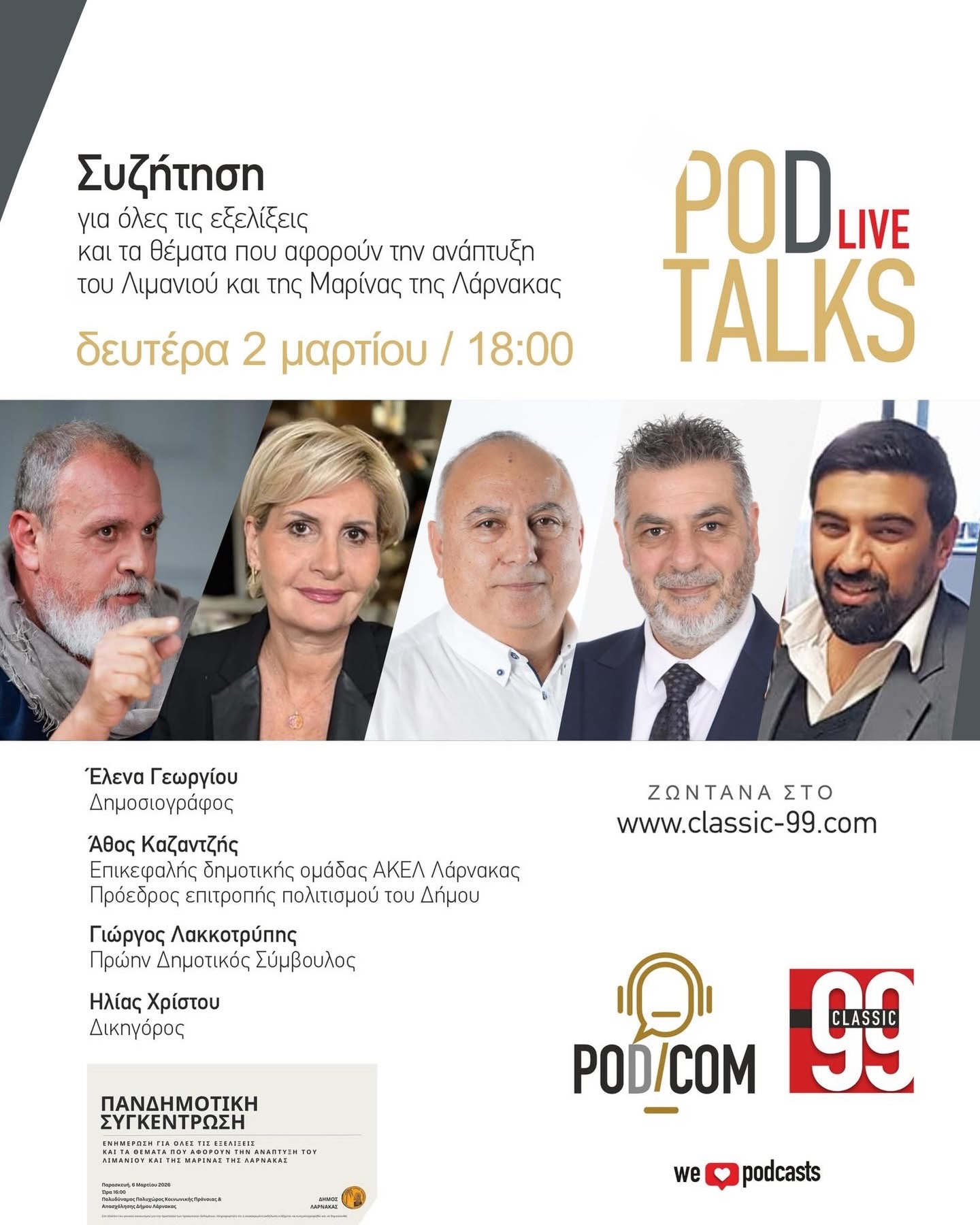 Πρόκειται για μια ουσιαστική και ιδιαίτερα σημαντική κουβέντα για το μέλλον της Λάρνακας, την οποία μπορείτε να ακούσετε εδώ:
