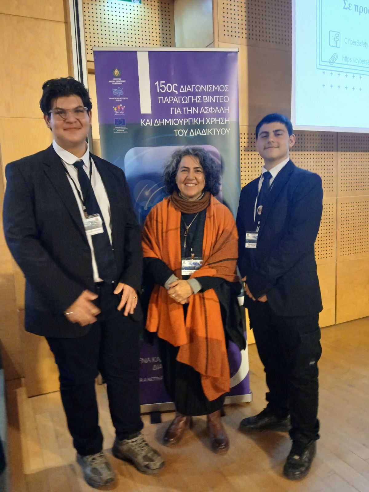 The first prize in the 15th Competition of the Cyprus Pedagogical Institute for Video Production on the theme of Safe and Creative Use of the Internet was awarded to the students of class A11 of Aradippou Lyceum “Tasos Mitsopoulos”, Sotirios Koromilas and Antonios Constantinou.
