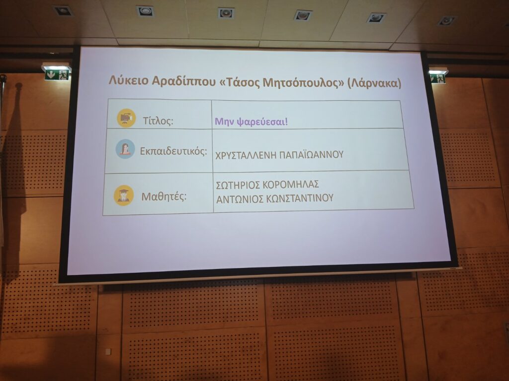 This distinction marks a significant achievement both for the students themselves and for Aradippou Lyceum “Tasos Mitsopoulos”, highlighting the importance of responsible and creative use of the internet.