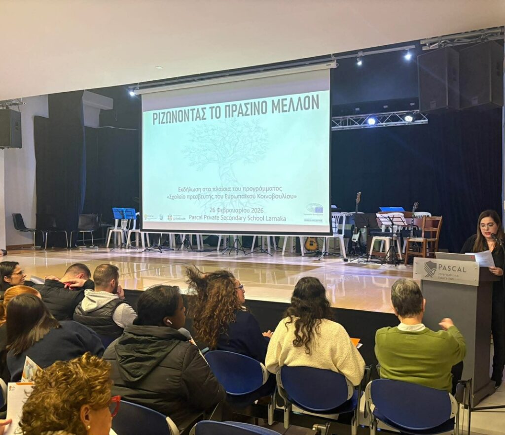 Σε μια εποχή όπου το περιβάλλον δοκιμάζεται καθημερινά, οι νέες γενιές καλούνται όχι μόνο να κατανοήσουν τις προκλήσεις, αλλά και να φανταστούν έναν διαφορετικό κόσμο. Με αυτό το πνεύμα πραγματοποιήθηκε στις 26 Φεβρουαρίου στο Ιδιωτικό Σχολείο Pascal στη Λάρνακα εκδήλωση στο πλαίσιο του προγράμματος «Ριζώνοντας το Πράσινο Μέλλον», με στόχο την καλλιέργεια περιβαλλοντικής συνείδησης και την ενεργό συμμετοχή των μαθητών.