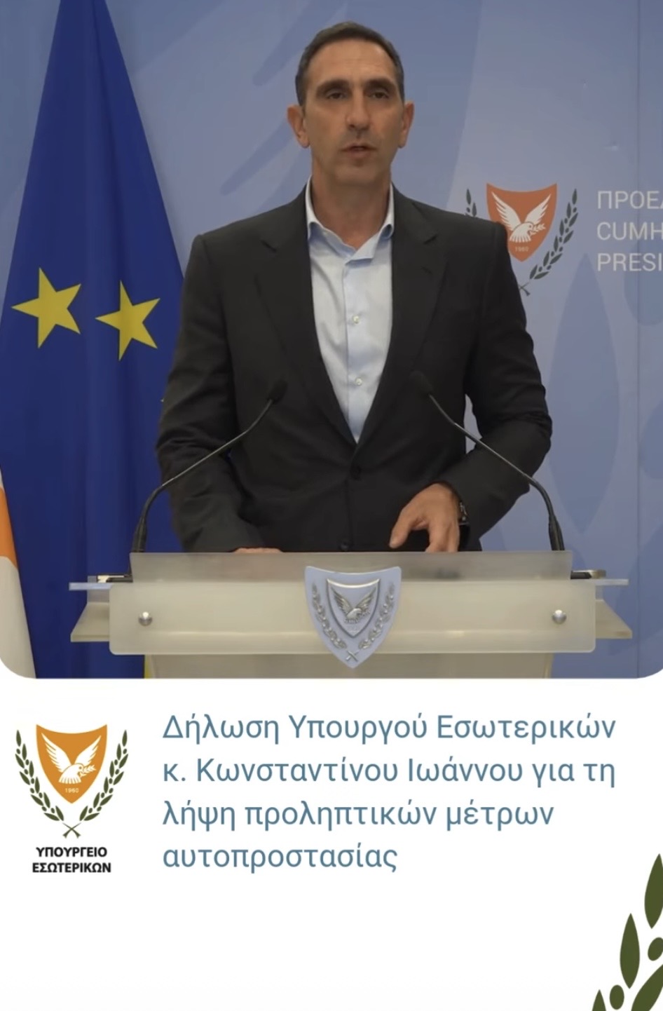 🎙️ Δηλώσεις Υπουργού Εσωτερικών Constantinos Ioannou👇