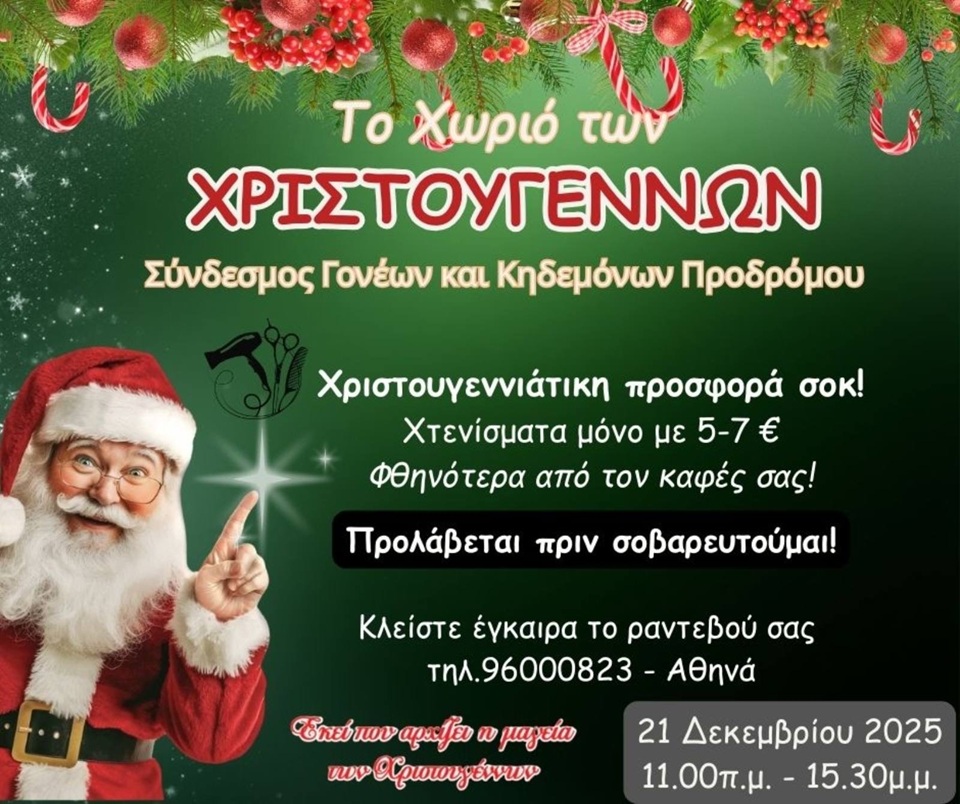 The Parents and Guardians Association of Prodromos is delighted to announce the grand Christmas event “The Christmas Village,” which will take place on Saturday, 21 December 2025, from 11:00 a.m. to 3:30 p.m., at Prodromos Primary School in Larnaca.