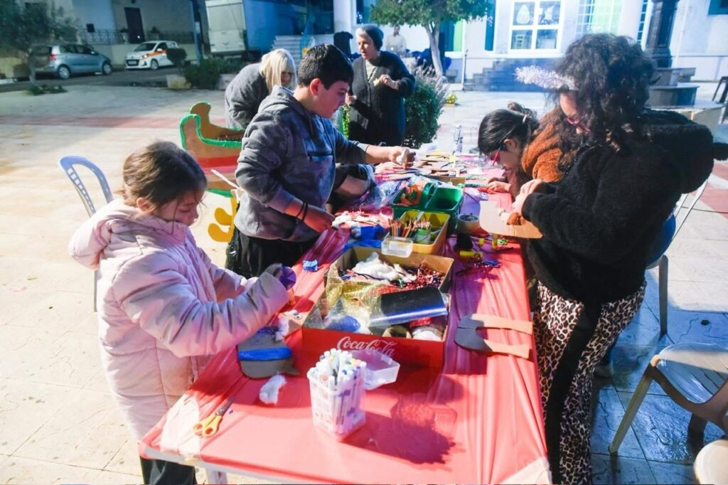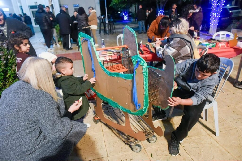 Ιδιαίτερη χαρά πρόσφερε το δημιουργικό εργαστήρι, όπου τα παιδιά, με φαντασία, χρώματα και συνεργασία, μεταμόρφωσαν ένα τρόλεϊ σε ένα μοναδικό χριστουγεννιάτικο όχημα.